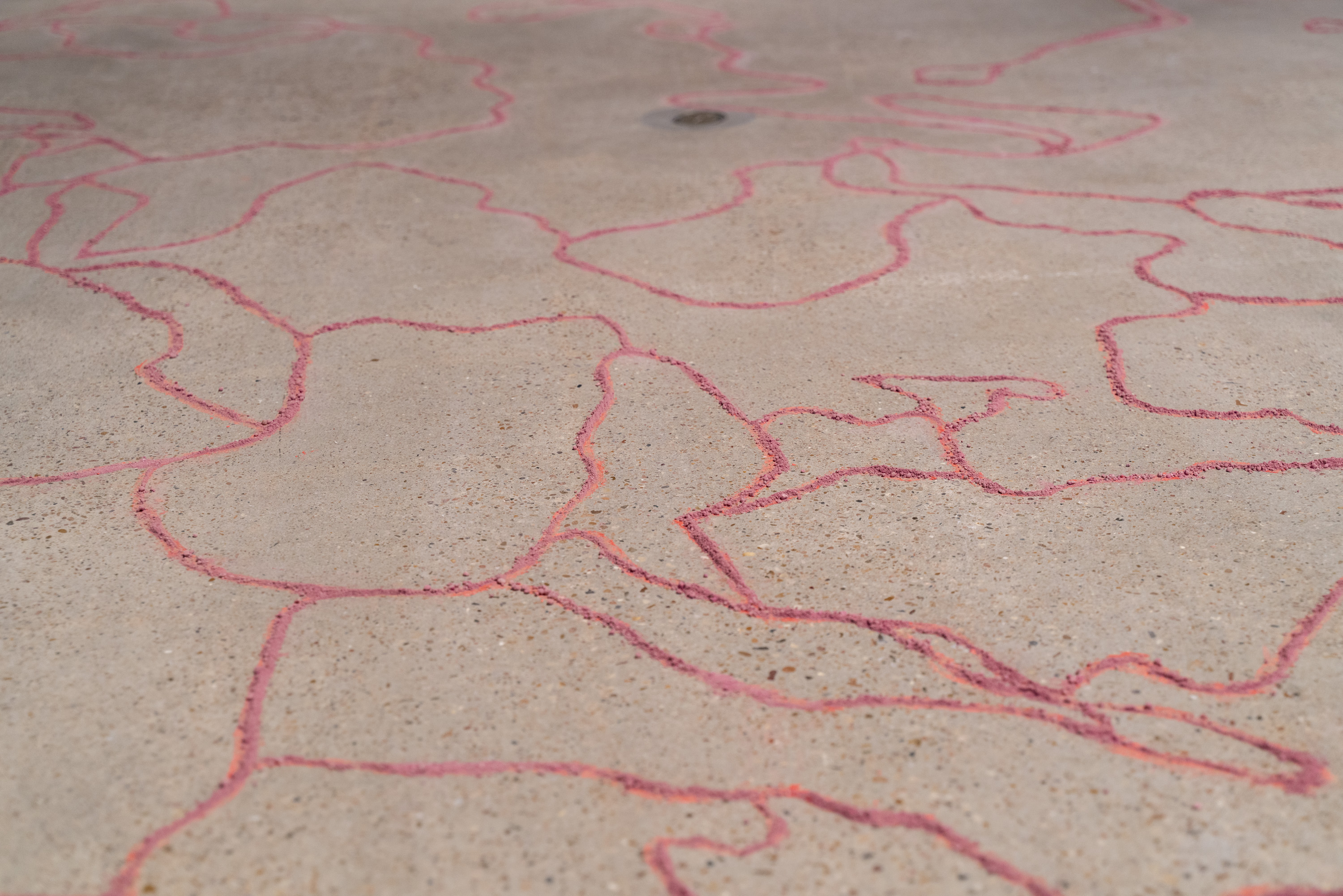 Remote Sensing, 2026, chalk, limestone sediment, rhodamine dye, Dimensions: approx. 17 x 17 ft.
