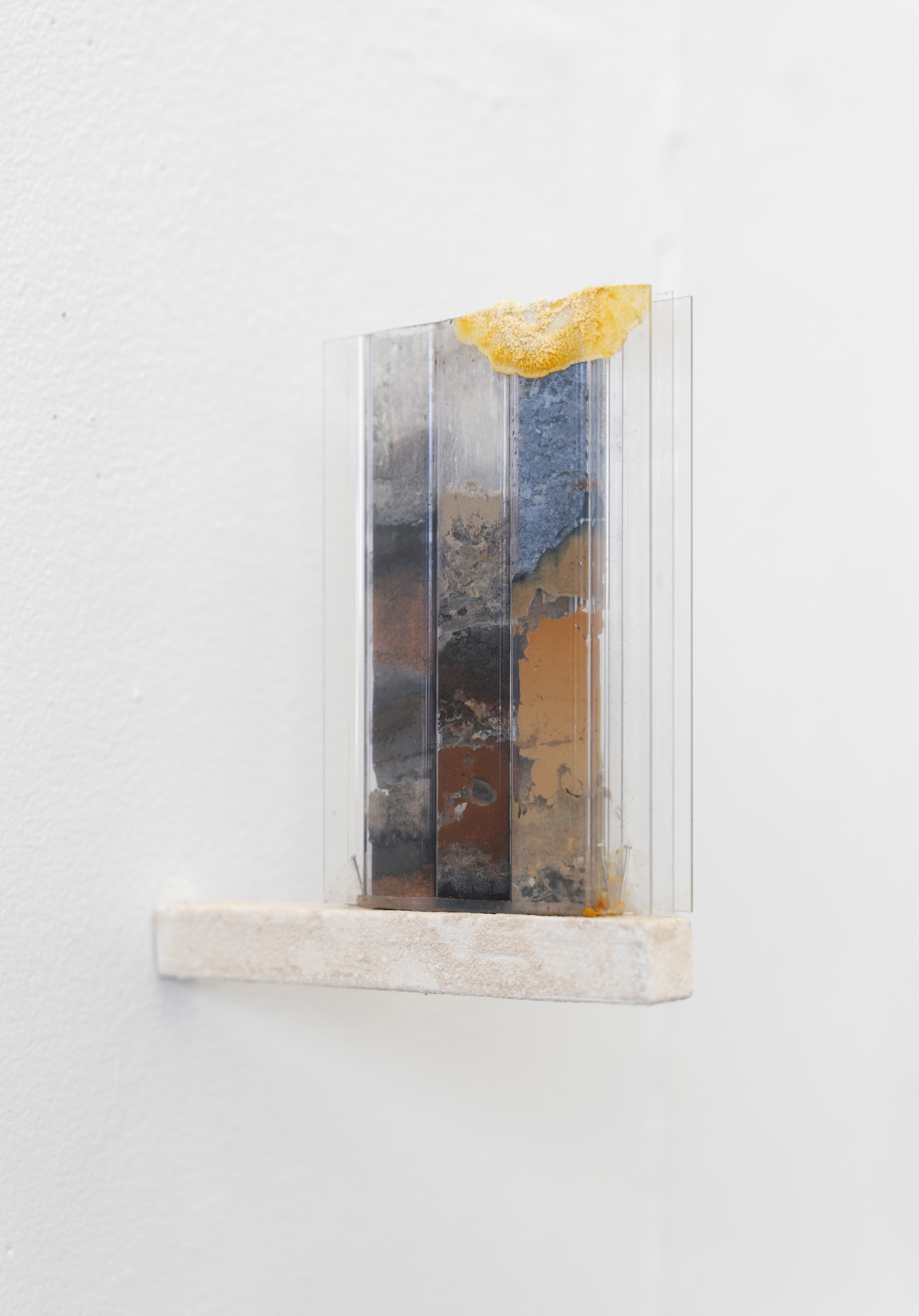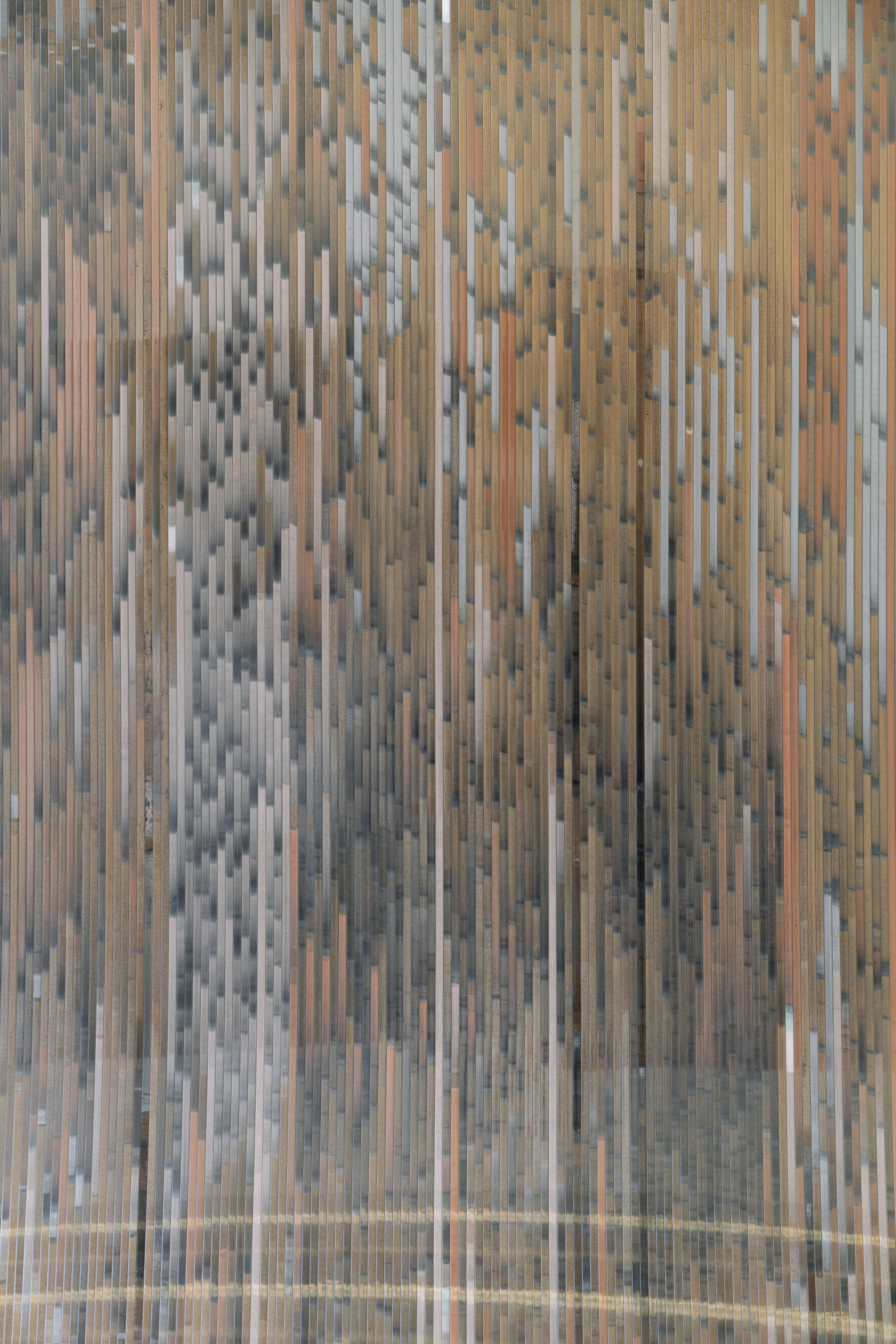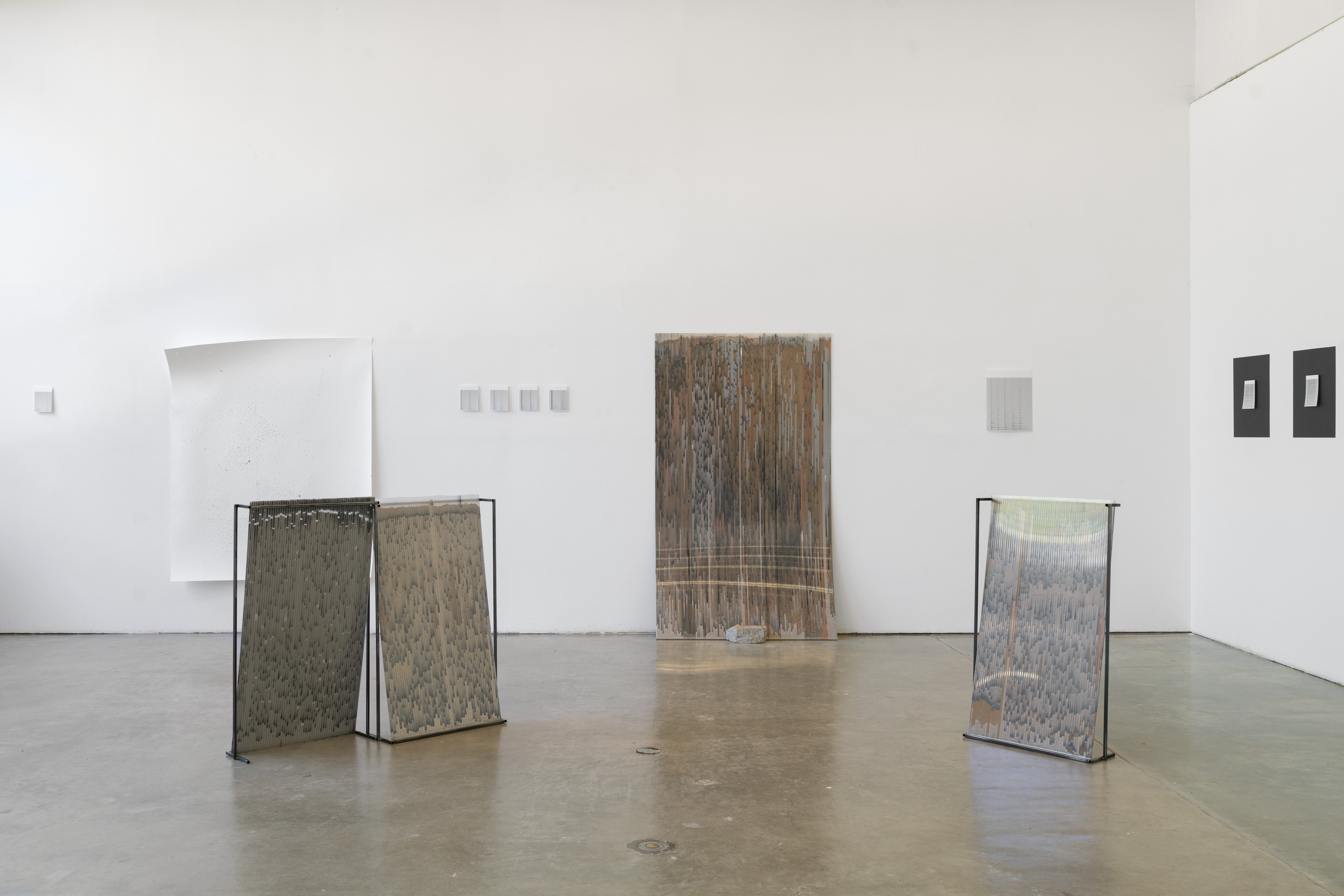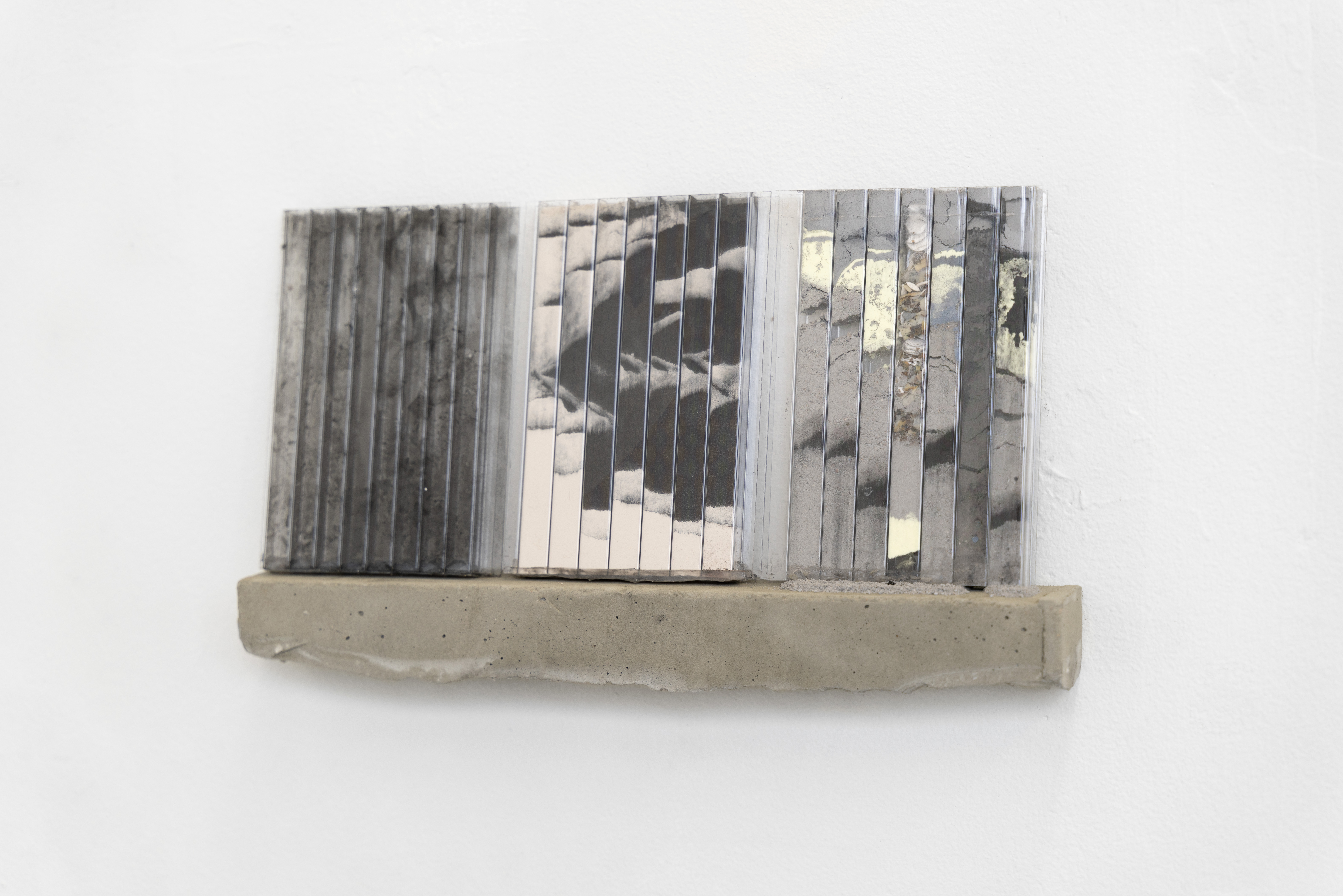 I make the series of works under the umbrella title ‘tracts’ by pouring granular material inside twinwall polycarbonate panels-- a building material commonly used for semi-transparent windows and walls. To make each ‘tract,’ I gather, sort, and pour granular materials inside the polycarbonate panels, which accumulates at the bottom of the channels, building up an image that evokes natural rhythms and phenomena.